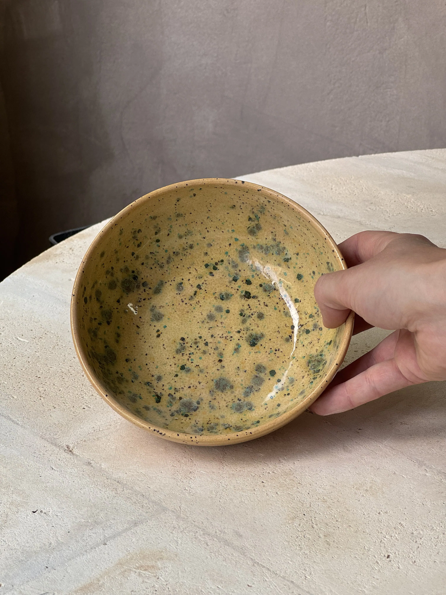Handmade bowl in earthenware clay. Dishwasher safe.